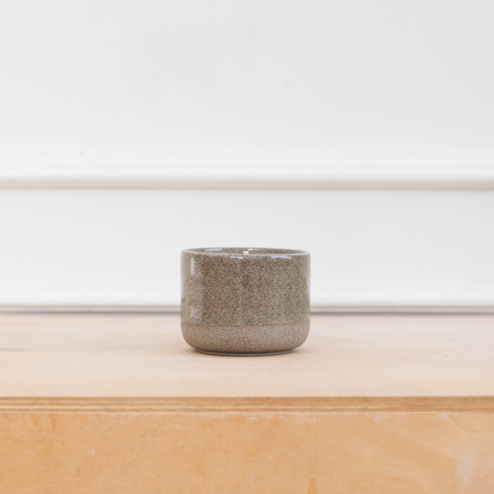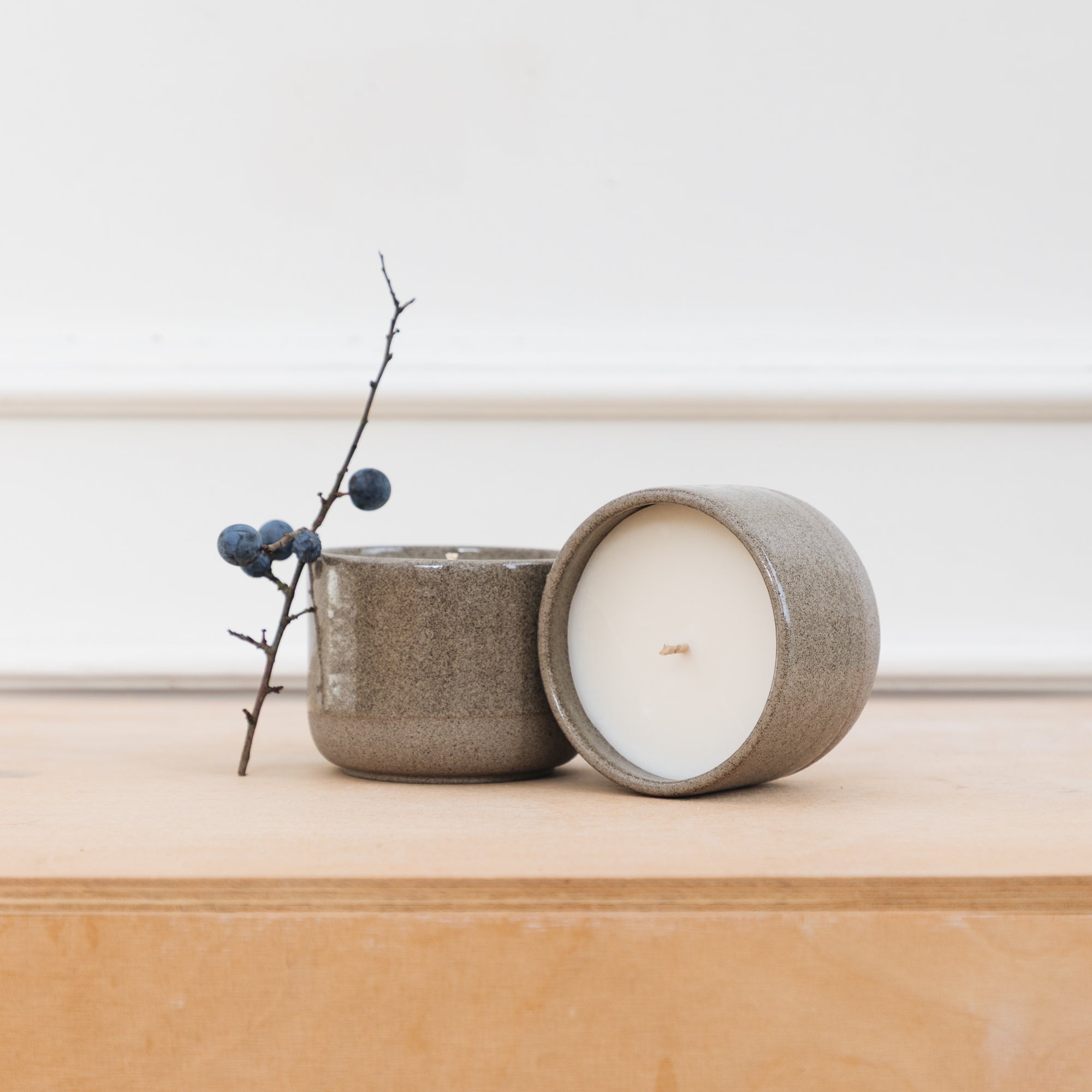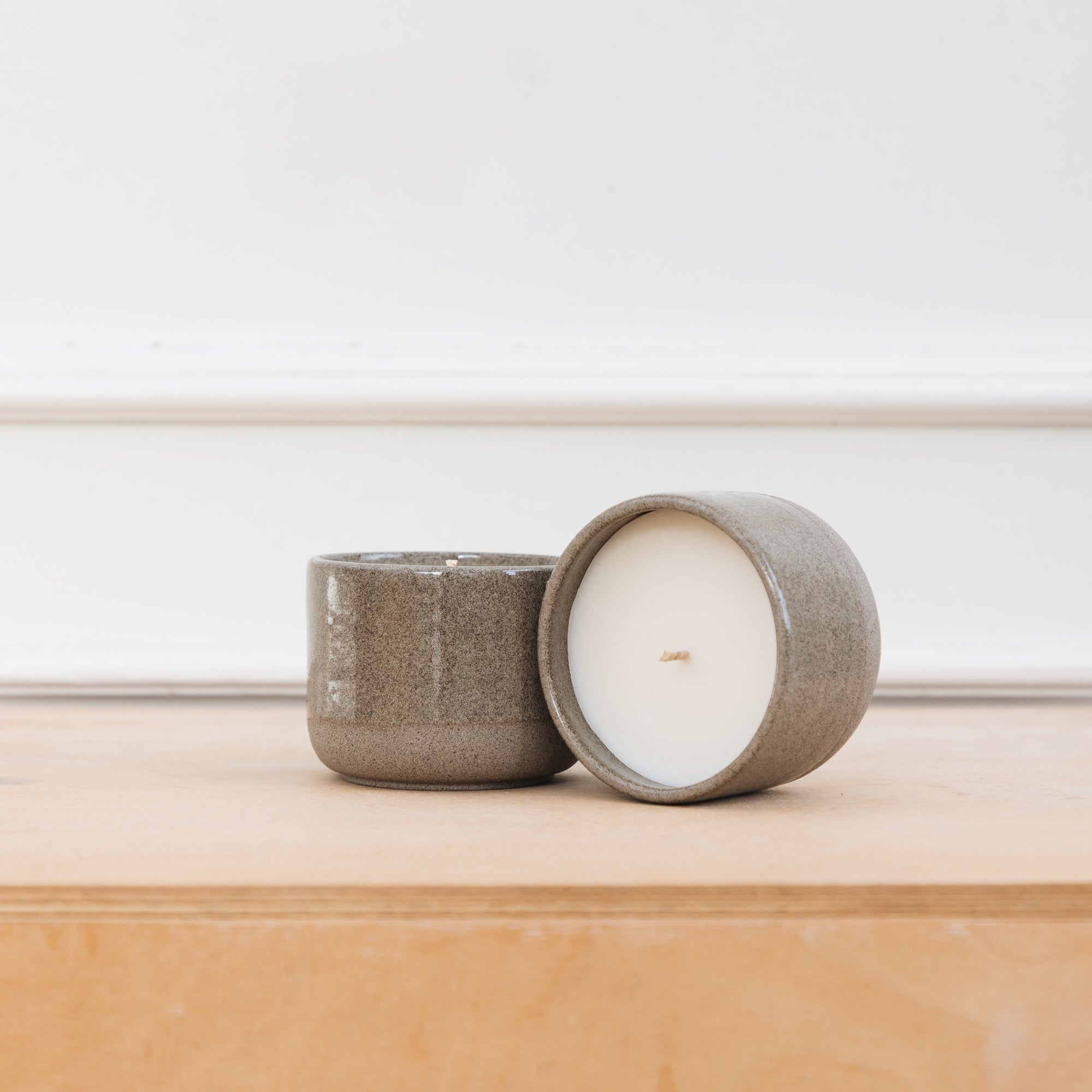 Der CANDLE CUP entstand in Kooperation mit Duft & Fein aus Würzburg. Zunächst wurde der Becher mit verschiedenen Steinzeugmassen von Hand auf der Töpferscheibe gedreht. Erhältlich ist er in einer anthrazitfarbenen Tonmasse und in einer hellen, die mit immer unterschiedlich ausfallenden haselnussfarbigen Farbspritzern versehen wurde.