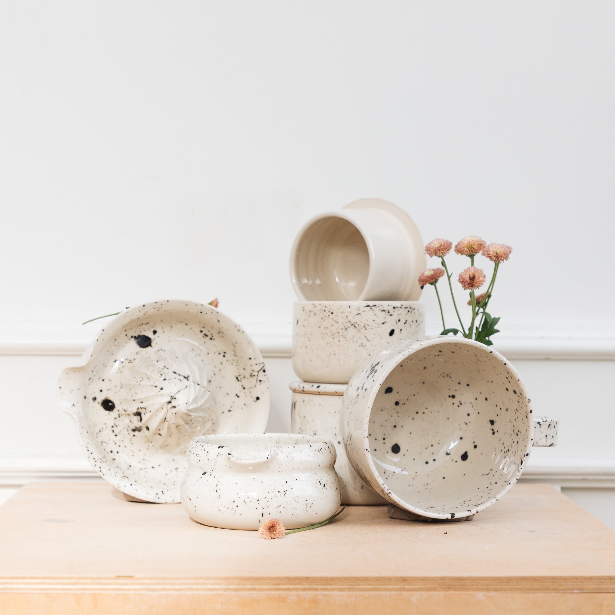 Jeder Artikel wurde von Hand getöpfert. Dieser Prozess ist sichtbar - in Unterschieden in der Form, der Größe oder der Glasur und des Tons. Das macht jedes Stück zu einem Einzelstück und für uns und hoffentlich auch für Dich zu etwas Besonderem.